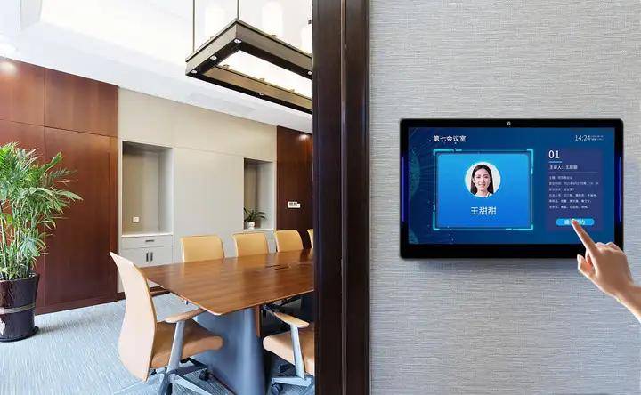 乔一科技自主研发的JOYEEY会议预约系统将人 脸识别签到集成于智慧门牌,可实现身份快速核验+签到状态自动同步,提升场景通行与管理效率,其积极作用主要体现在以下方面: